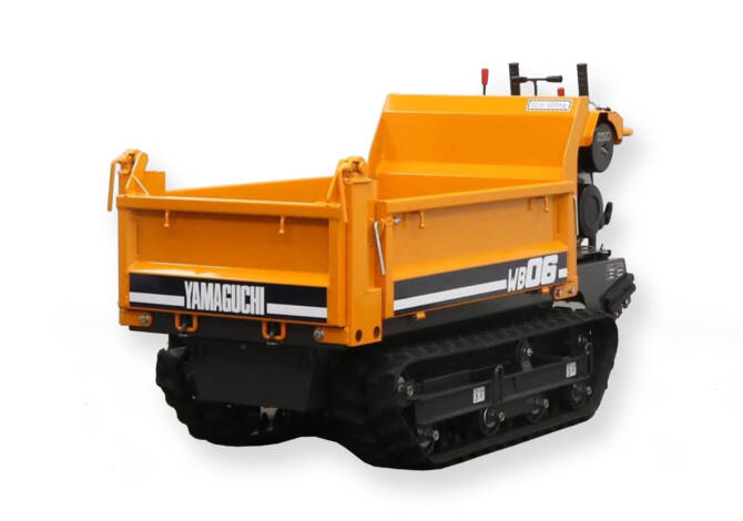 All of the Yamaguchi mini crawler tracked dumpers provided by us here at Cautrac, feature  heavy-duty rubber tracks with large diameter rollers and a positive tooth-drive engagement using a sprocket.